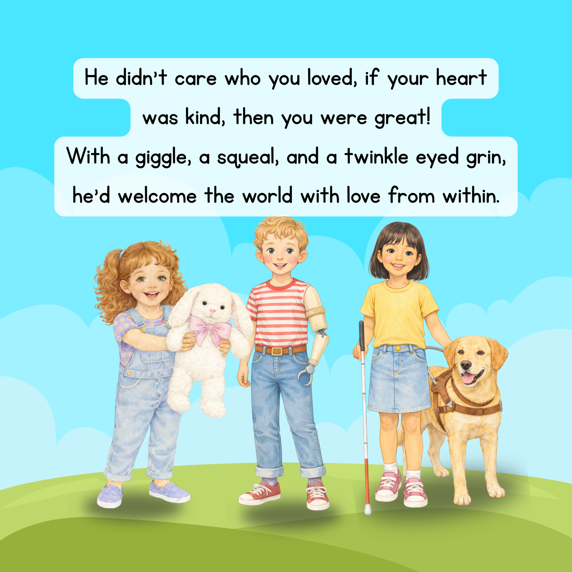 Through Rhett's joyful spirit and gentle heart, children learn that love lives in kindness, friendship, inclusion, and the small moments we share each day.